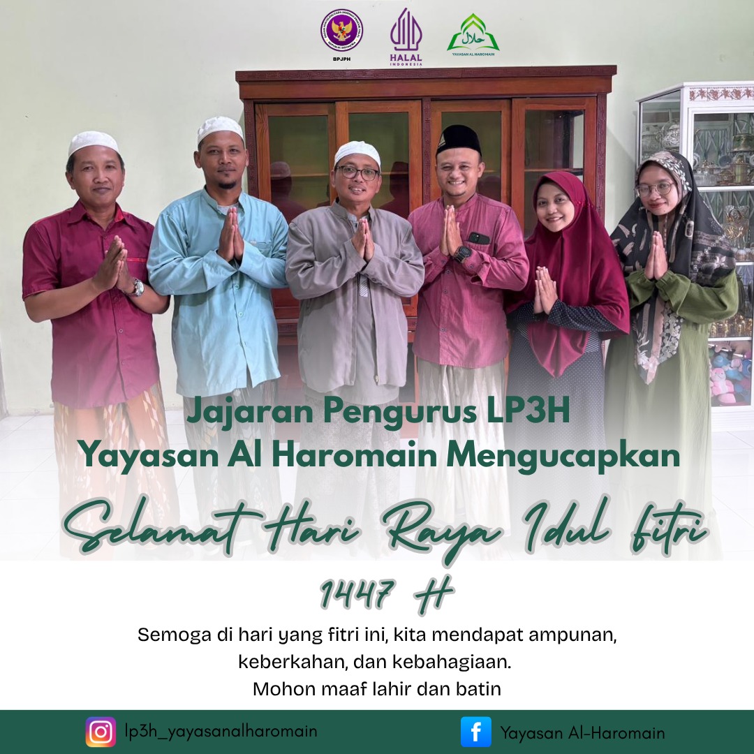 Dalam rangka menyambut Hari Raya Idul Fitri 1447 Hijriah, jajaran pengurus LP3H Yayasan Al Haromain menyampaikan ucapan selamat kepada seluruh umat Muslim.